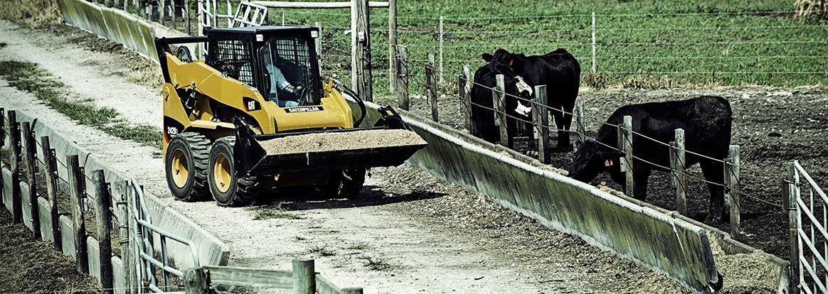 Cat® skid steer loaders are small enough to maneuver around congested job sites and access areas too tight for larger machines. Fitted with the correct work tool attachments, skid steers can be used for moving soil, debris and waste, clearing snow and ice, transporting pallets and bails of hay and a variety of other useful tasks.
